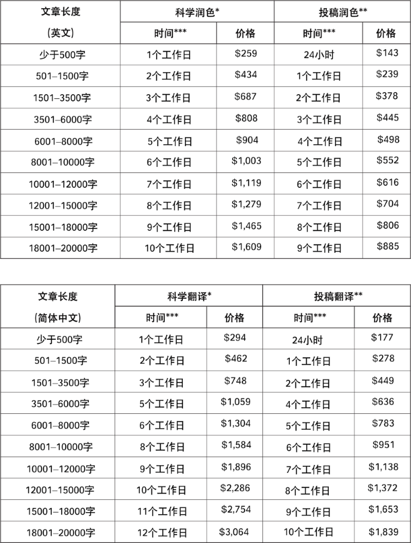 *我们的双语专业研究人员和英语母语编辑会一同合作来全面润色或者翻译您的手稿,甚至包括作者单位,表格,图片,补充材料等。